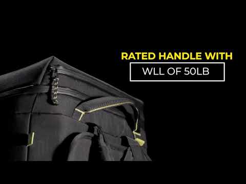The VERTAC 60L offers exceptional versatility with its comfortable shoulder straps. These straps can be conveniently tied together, transforming the bag into a duffel for easy carrying. Additionally, the top grab handles are designed with a rated working load limit, ensuring durability and reliability in any vertical environment, whether it be during work or play.