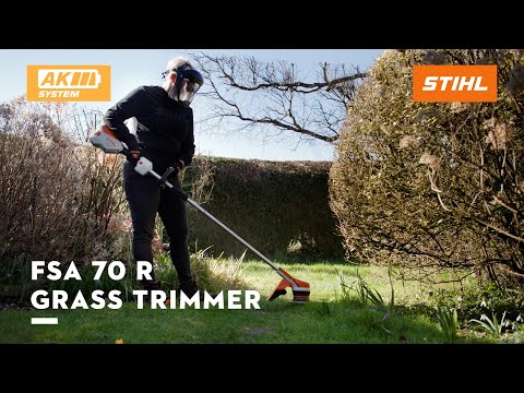 The STIHL FSA 70 R is a lightweight, battery-powered brushcutter featuring a brushless motor and ergonomic handle, perfect for efficient grass and weed trimming.