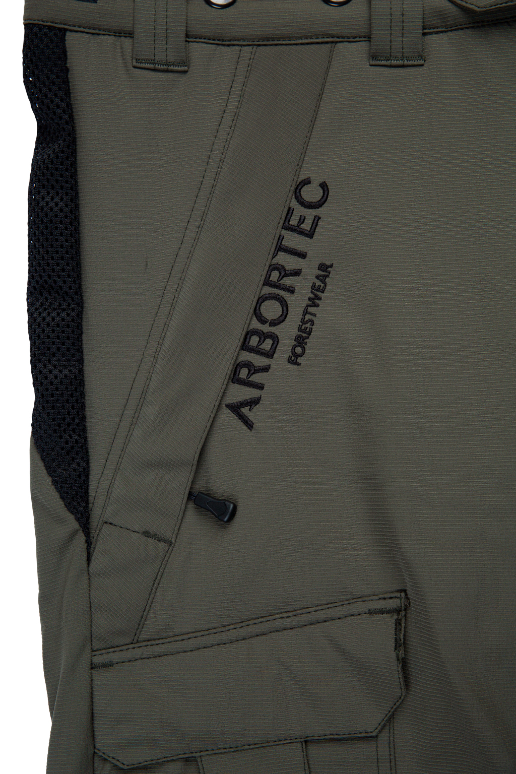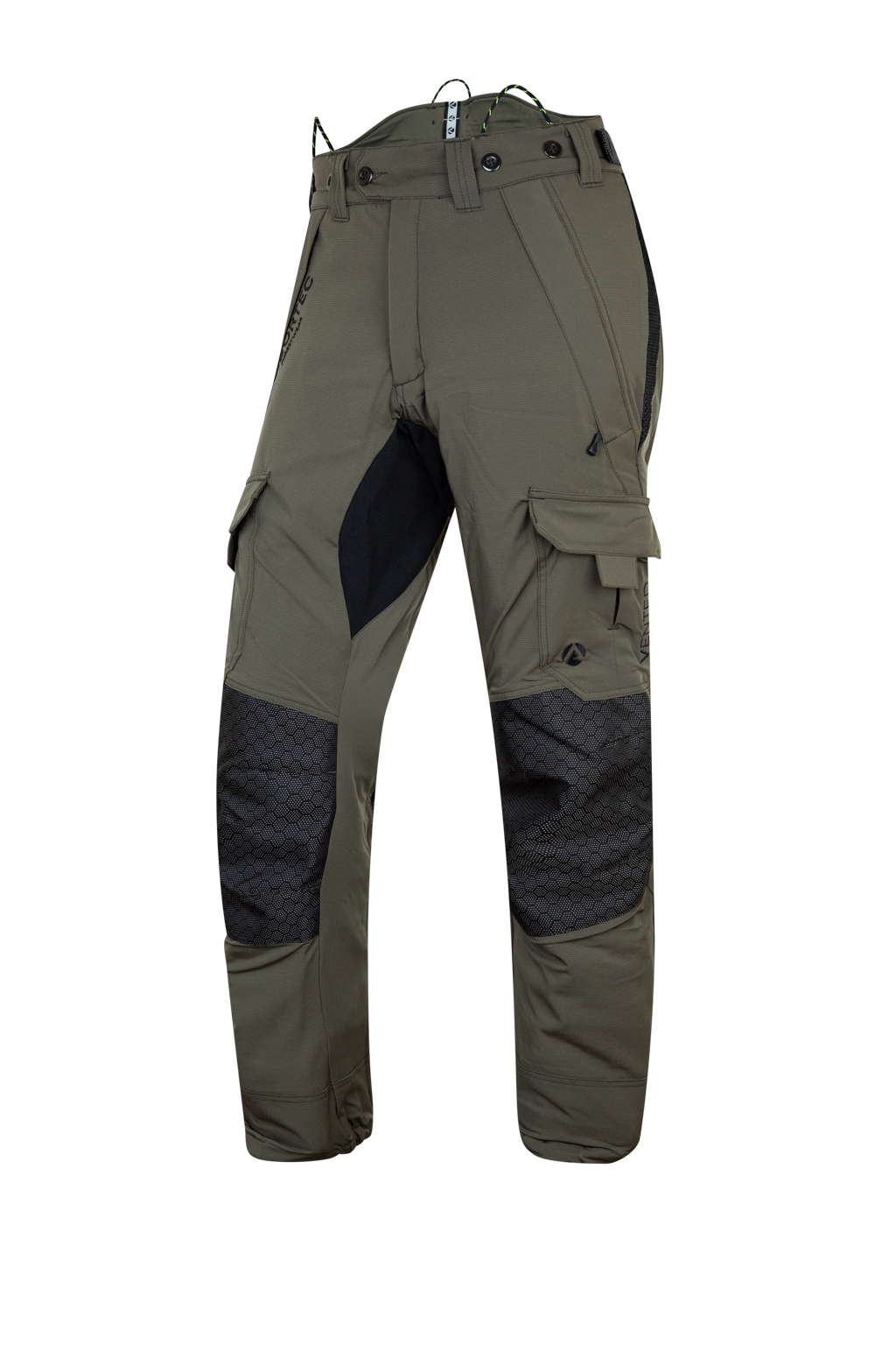 Every detail is designed with arborists in mind—from downward-facing YKK pocket zips for easy harness access to debris-resistant zip covers, multiple storage pockets, and an adjustable waistband with high-back support.