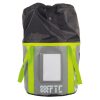 The SPIDER BOX has a large opening, for an easy access to the rope, and a flexible protection with drawstring closure. Two mesh panels provide good ventilation of the ropes. There also is a large transparent pocket for papers, to display the name of the climber or any other useful information.