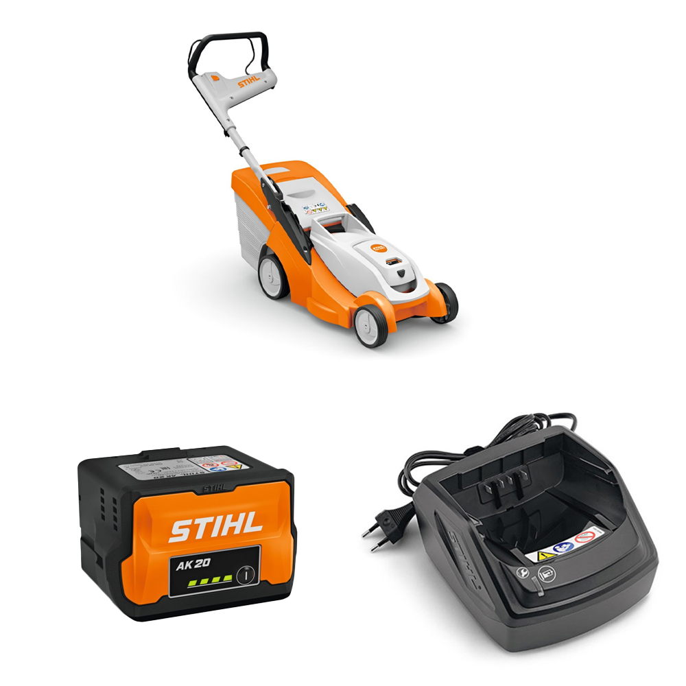 Kit 1: Stihl RMA 239 C Battery Lawnmower, 1 x AK20 battery and 1 x AL101 charger.