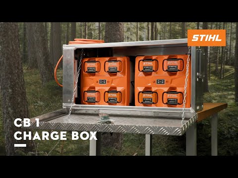 The STIHL CB 1 Charging Box is a lockable vehicle-mounted unit that charges and stores up to eight AP batteries, complete with space for two AL 301-4 chargers and passive ventilation.
