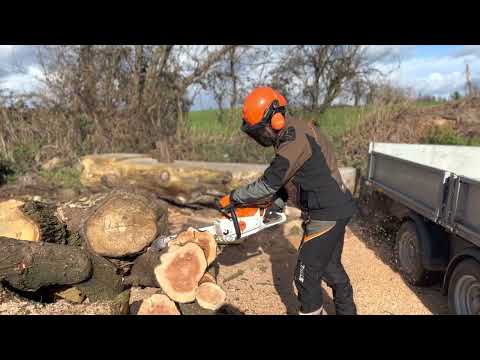 The Stihl MSA 300 is a professional 36 V battery chainsaw delivering 3 kW power, LED cockpit, selectable modes, side-access chain tensioner, and splash-proof design—ideal for high-demand forestry work.