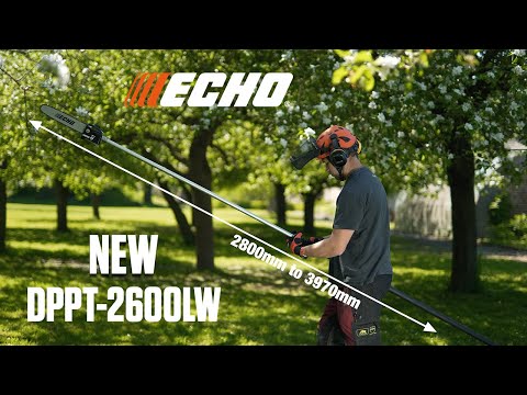 The ECHO DPPT-2600LW Telescopic Power Pruner is a lightweight 56 V cordless pole tool offering up to 3.97 m reach, high chain speed and minimal fatigue for professional trimming.