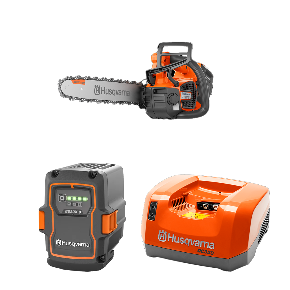 Kit 1: Husqvarna T540i XP Battery chainsaw with bar, chain and scabbard, 1 x 40-B220X Battery and 1 x QC330 charger.
