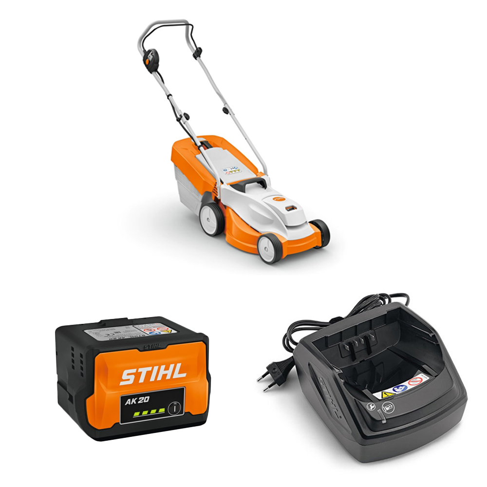 Kit 1: Stihl RMA 235 Battery Lawnmower, 1 x AK20 battery and 1 x AL101 charger.