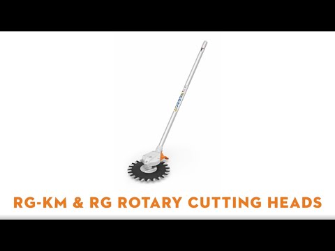 The RG-KM Rotary Head attachment cuts weeds on gravel and paved areas with reciprocating blades and low debris throw—ideal for chemical-free hard-surface maintenance.