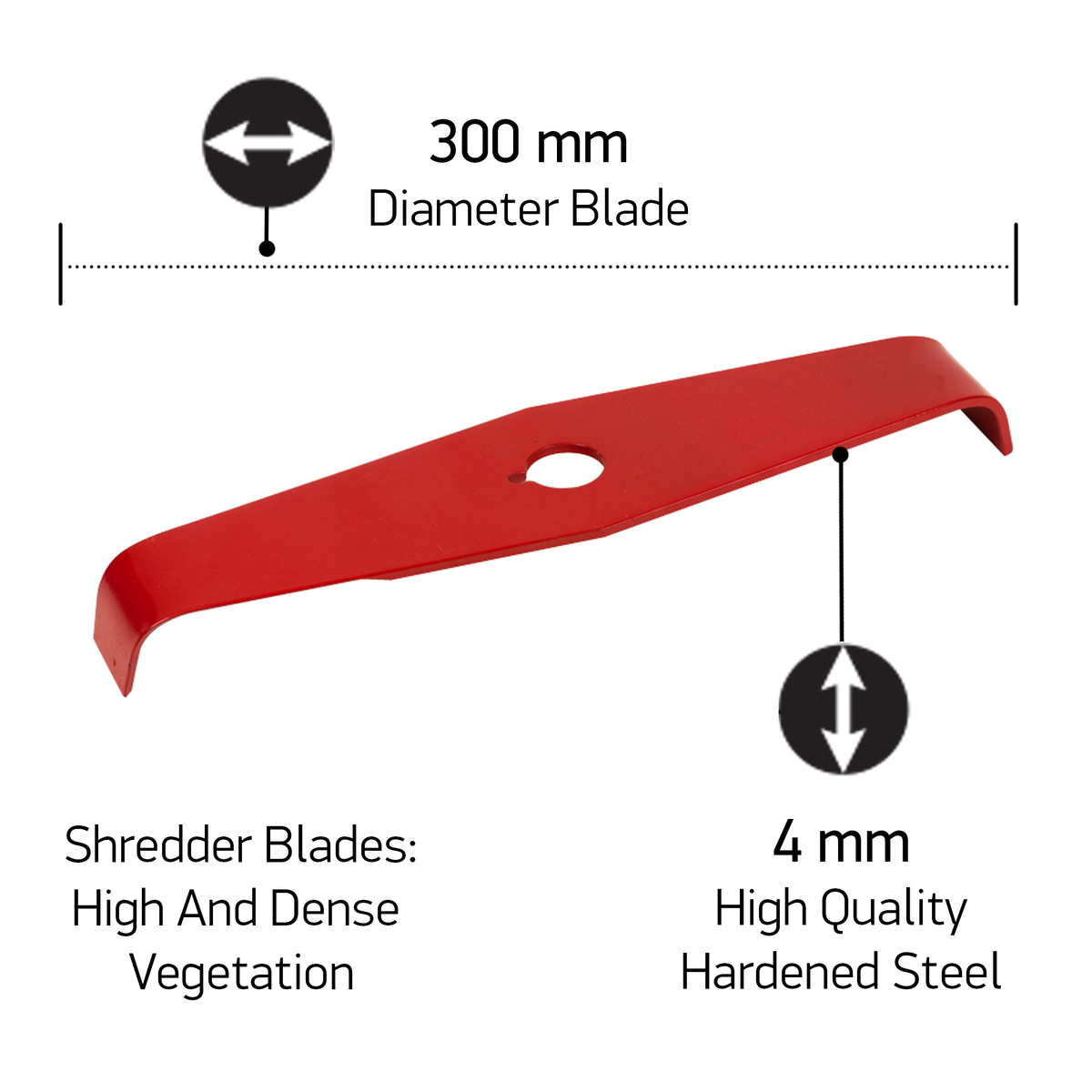 - 300 mm diameter, 2-tooth steel mulching blade