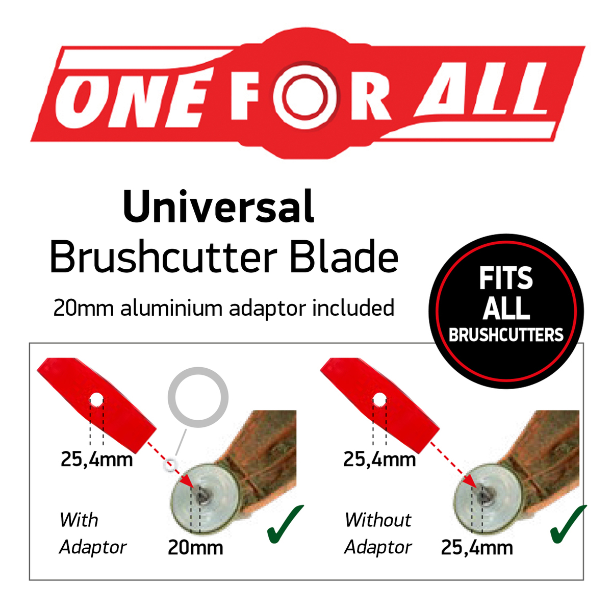 Oregon’s 300 mm, 2-tooth universal mulching blade in hardened steel (4 mm) fits 20 mm & 25.4 mm bores and handles dense grass, weeds, and undergrowth.