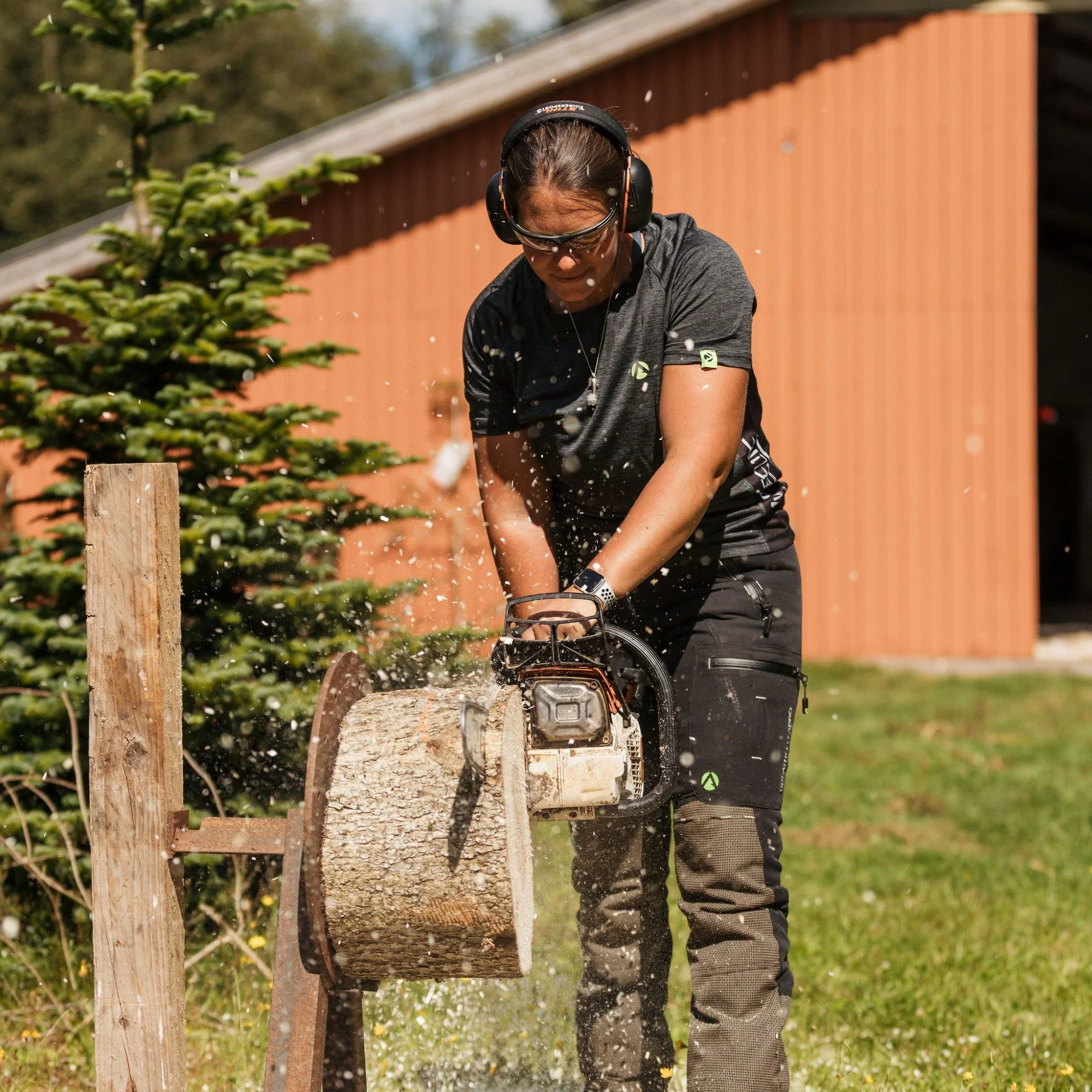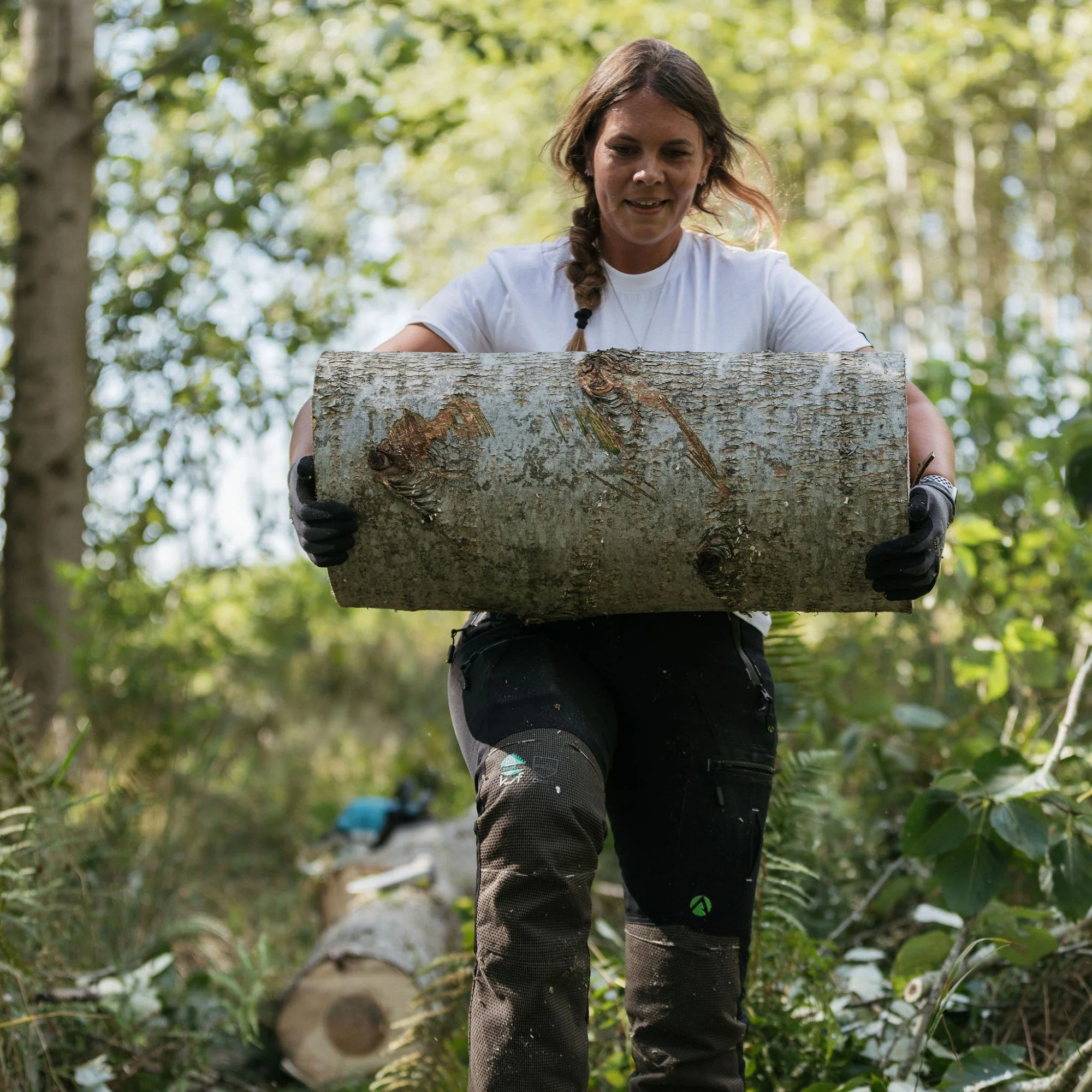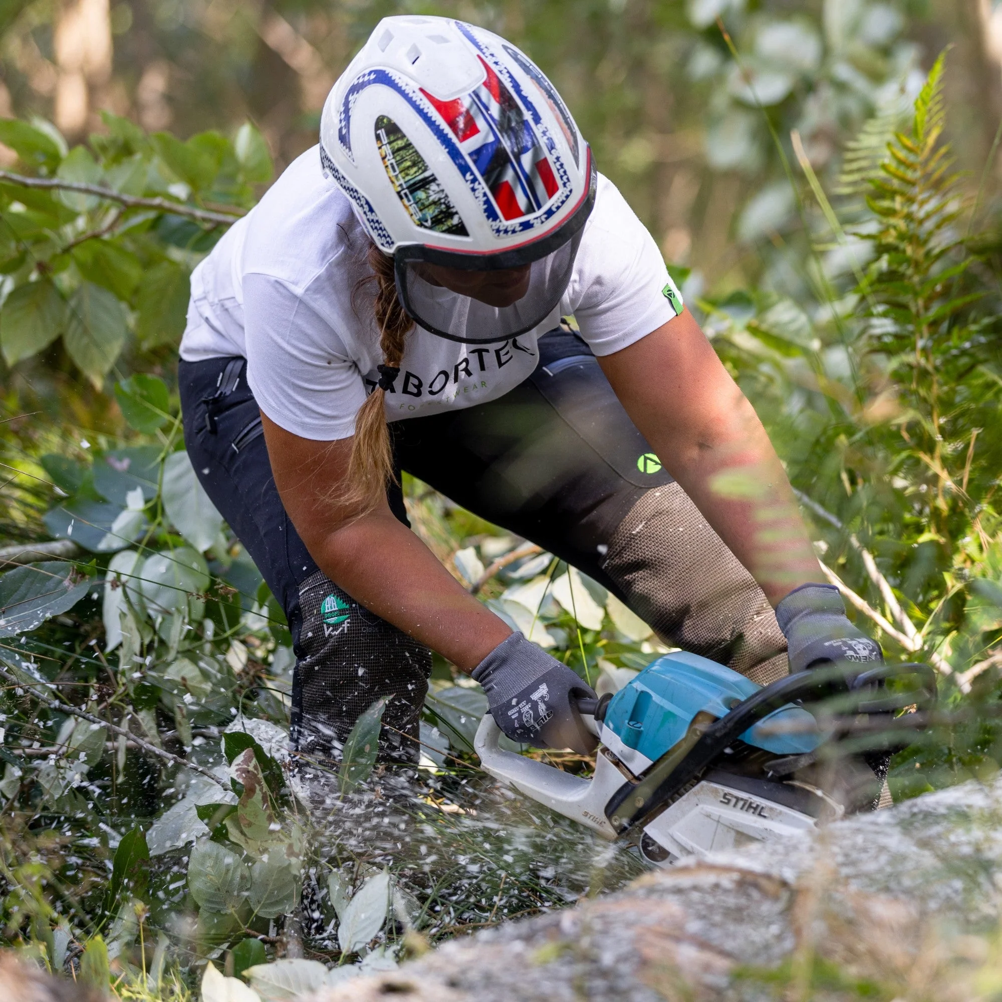 The trousers have been shaped to follow the female form, offering better comfort and movement than unisex fits. Kevlar-reinforced panels on the front and ankle help protect high-wear areas from scrapes, bark and daily abrasion. The Kevlar crotch panel reduces the risk of ripping, while the stretch fabric supports full mobility when climbing or manoeuvring through branches. A newly developed comfort liner improves the internal feel and helps prevent sawdust from building up during active use.