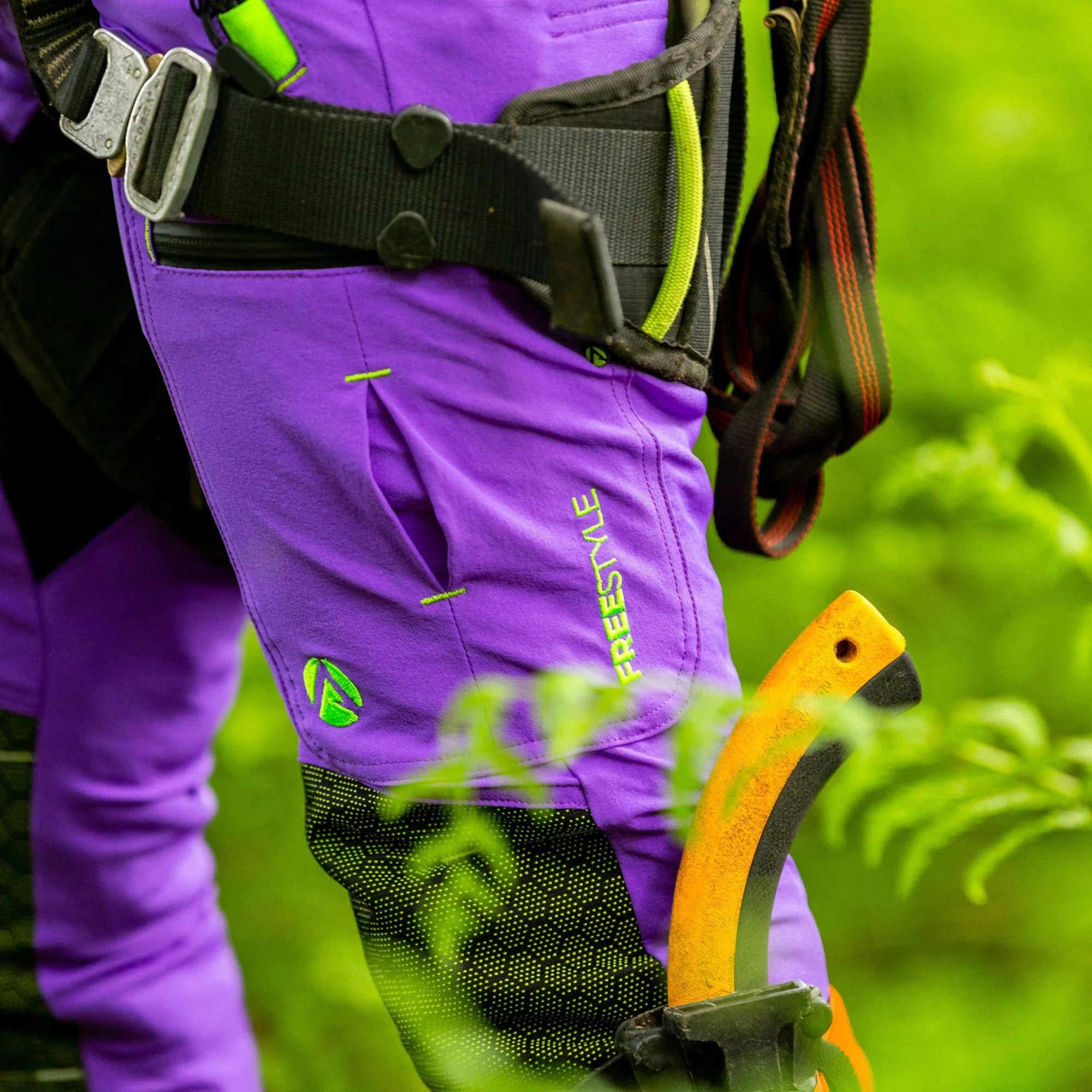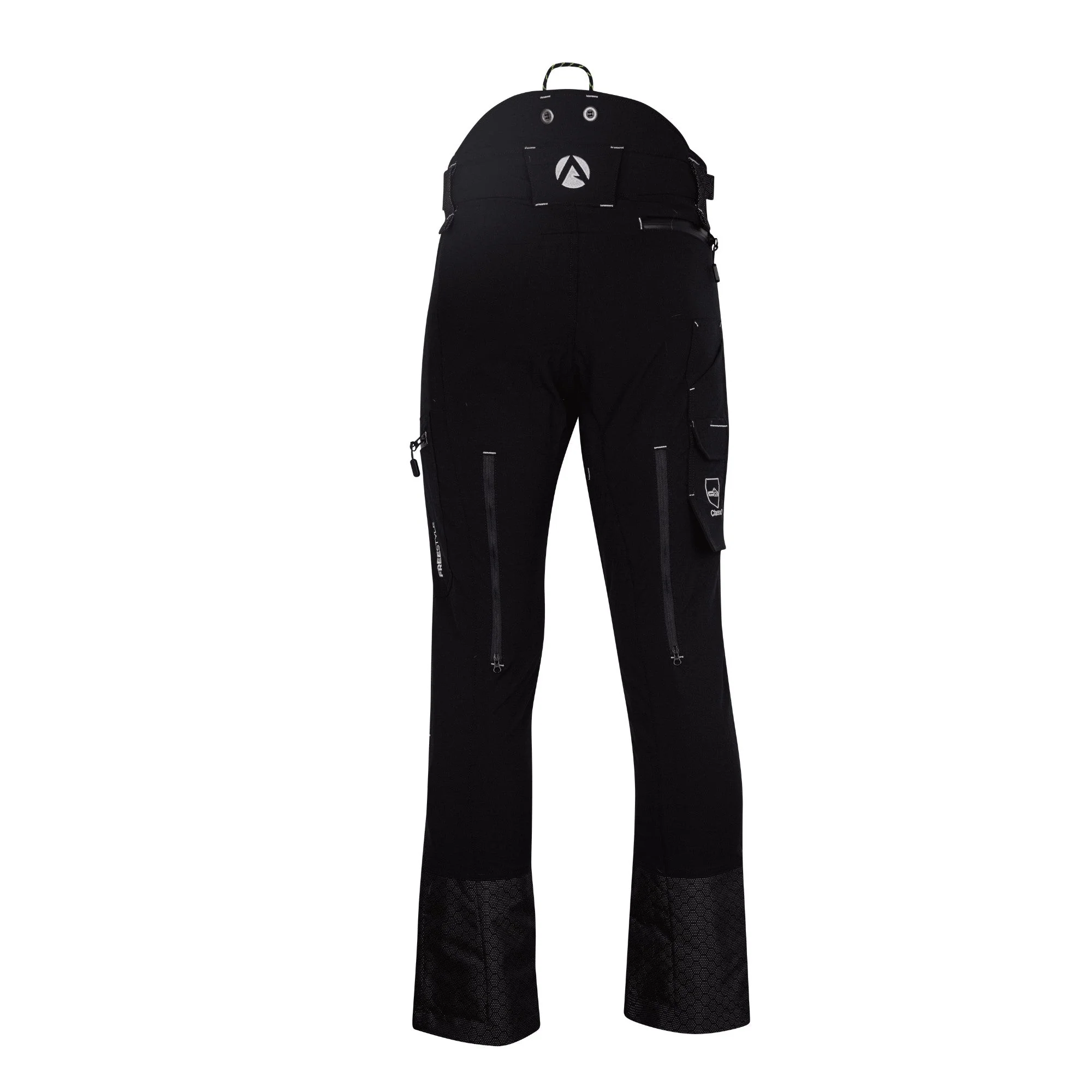 - AT4061 – Class 1 (20 m/s) EN 381-5 Type A.Introducing the Freestyle Collection.The Freestyle Collection has been designed to make the working day easier. It is durable, breathable, and loaded with new features.The Freestyle Collection has been built with new outer materials and a durable new lower leg material. In addition to durability, the flexibility will allow you to manoeuvre around the job site and canopy of a tree with ease.The Collection also comes with an elasticated waist, offset seams and articulated knees for extra flexibility and comfort. The crotch is made with Kevlar and an incredibly stretchy fabric that allows for the ultimate amount of movement and flexibility in the tree.This style has been designed with the foresters in mind. It has a high back with attachment points for braces with the addition of a ruler pocket. All the external pockets are zipped to keep debris out as well as air vents for extra breathability (Type A only.)Each pair is handcrafted in our own Portuguese factory. This enables us to make changes to products quickly and ensure the finished article has been made to the highest standard.FEATURES AND BENEFITS: